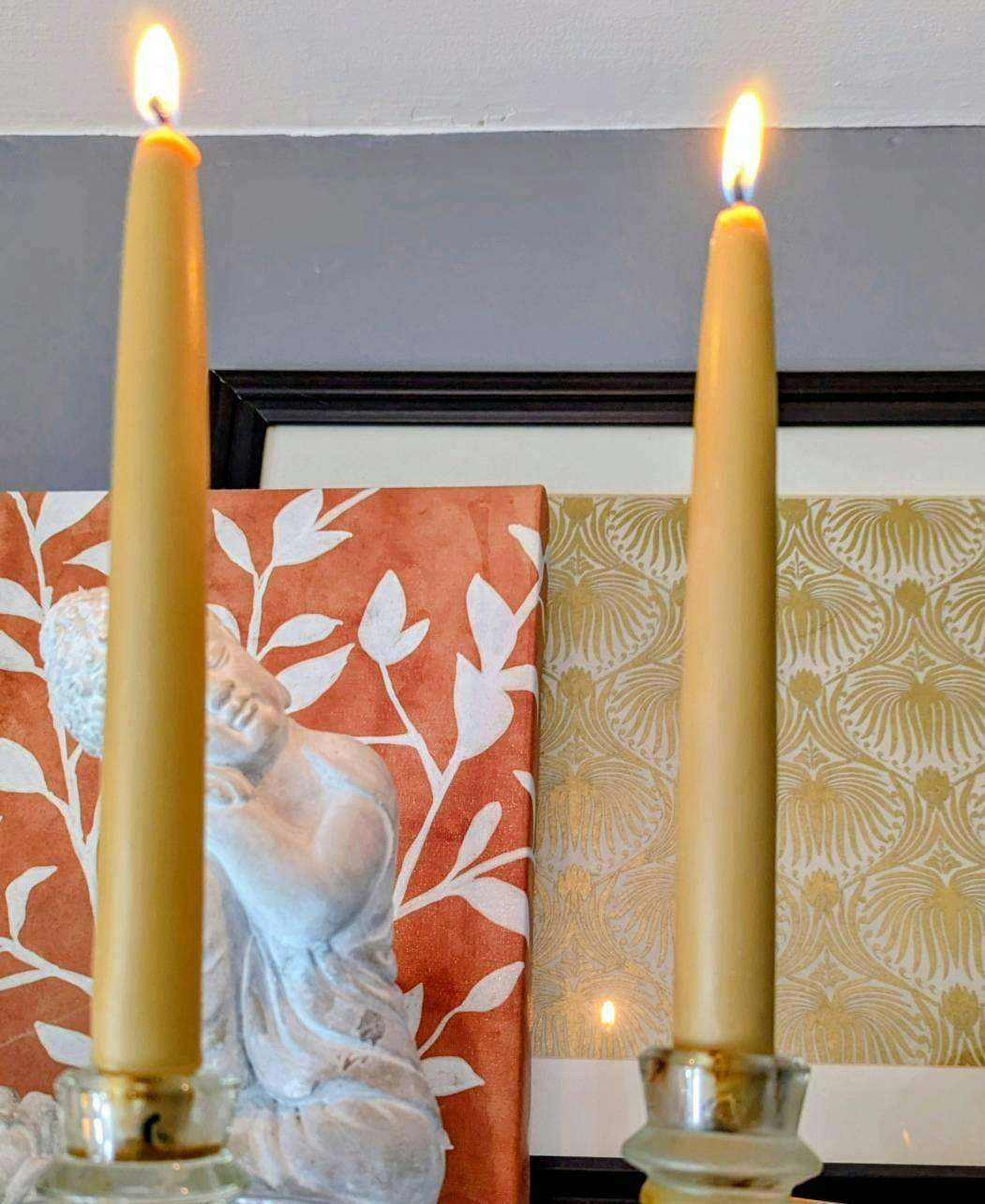 These traditional 8 inch tall Taper candles are lovingly hand dipped using pure cotton wicks. Most days I'm hustling around the clock between several wax melting vats, dipping and trimming to ensure your candle is made as fresh as possible to when you order it.