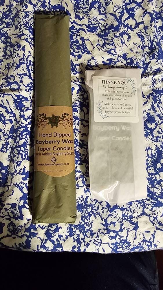 My Bayberry candles are made of real bayberry wax, not a bayberry colored or scented substitute. Bayberry wax is extremely brittle on its own. To protect your investment, we blend just the right amount of pure beeswax to ensure that your candles will burn bright and clean and not easily shatter.